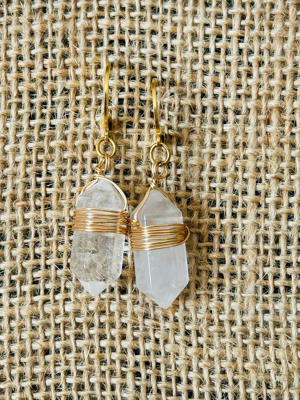 Boucles d’Oreilles Cristal de Roche Pointe – Acier Doré – Clarté & Purification